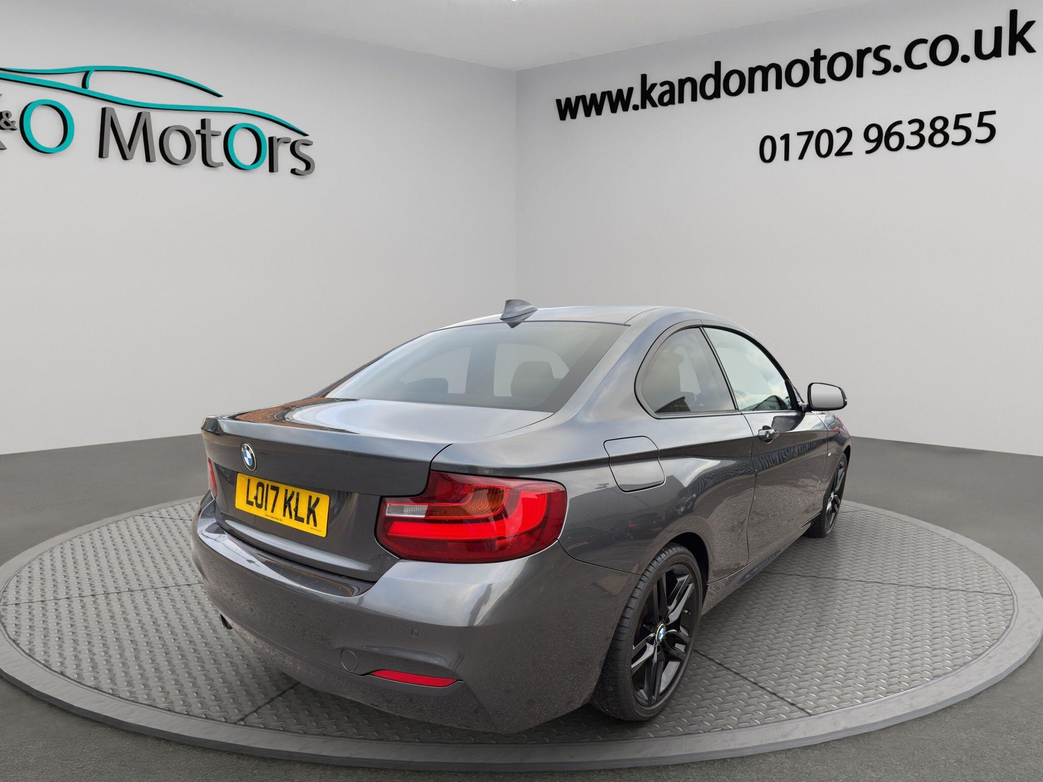 This 2017 BMW 218i coupe M Sport, finished in Metallic Grey, is ULEZ compliant and offered for sale in Southend, Essex. It benefits from fantastic service history, some great optional extras such as front and rear parking sensors, comfort pack, privacy glass etc. The car has been fully prepared and is ready for its next owner today. K&O Motors, your trusted independent car dealer in Southend-on-Sea, Essex, specialising in quality used cars at competitive prices. All vehicles are hand-selected for condition, value, and performance and are available for immediate viewing. We are a family run business with 8 staff members (7 are family!) and offer a much more friendly environment to buy your next car than some of the bigger supermarket dealers! At K&O Motors in Southend, every vehicle is HPI clear and undergoes a comprehensive 150 point health check for complete peace of mind. We’re proud to be ranked in the top 5% of AutoTrader dealers for five consecutive years, earning the “Highly Rated for Customer Service” award every year thanks to our commitment to customer satisfaction. Ask a team member how to secure this vehicle today with a fully refundable deposit scheme from as little as £250. With over 300 verified 5-star reviews and a 99%+ customer satisfaction rate, you can buy with confidence. We offer competitive part exchange, flexible finance options for all credit backgrounds (including poor credit), and nationwide delivery. For added reassurance, nationwide warranty cover is available for up to 3 years. We’re conveniently located in Southend, Essex, with free collection from Southend Central or Prittlewell train stations. People have also flown into London Southend airport to visit us! Viewings is advised by appointment. Opening hours: Mon–Fri 9:15am–5.30pm | Sat 9:15am–1pm. Out-of-hours appointments available on request. K&O Motors – Quality Used Cars in Southend, Essex. Contact us today.