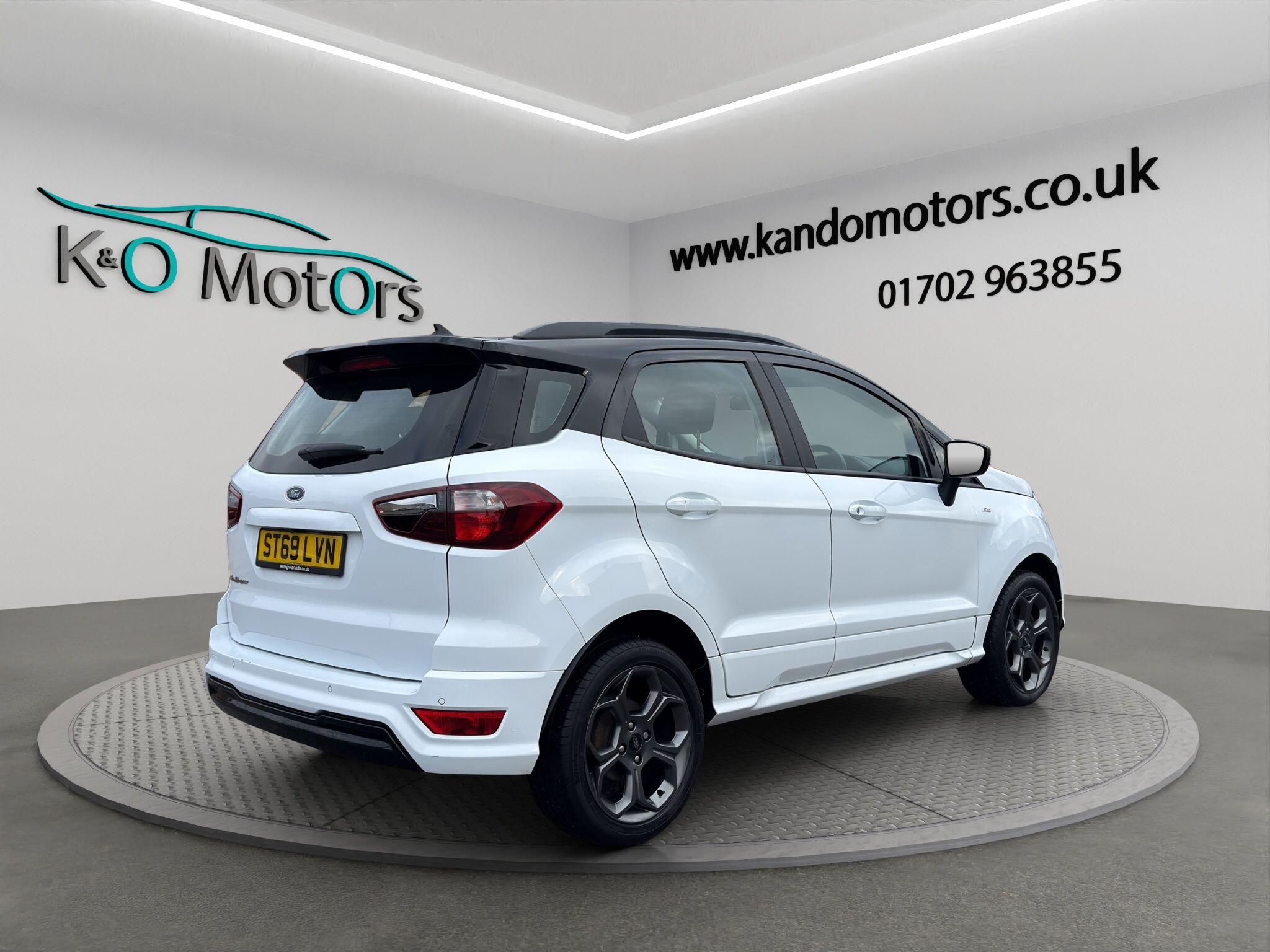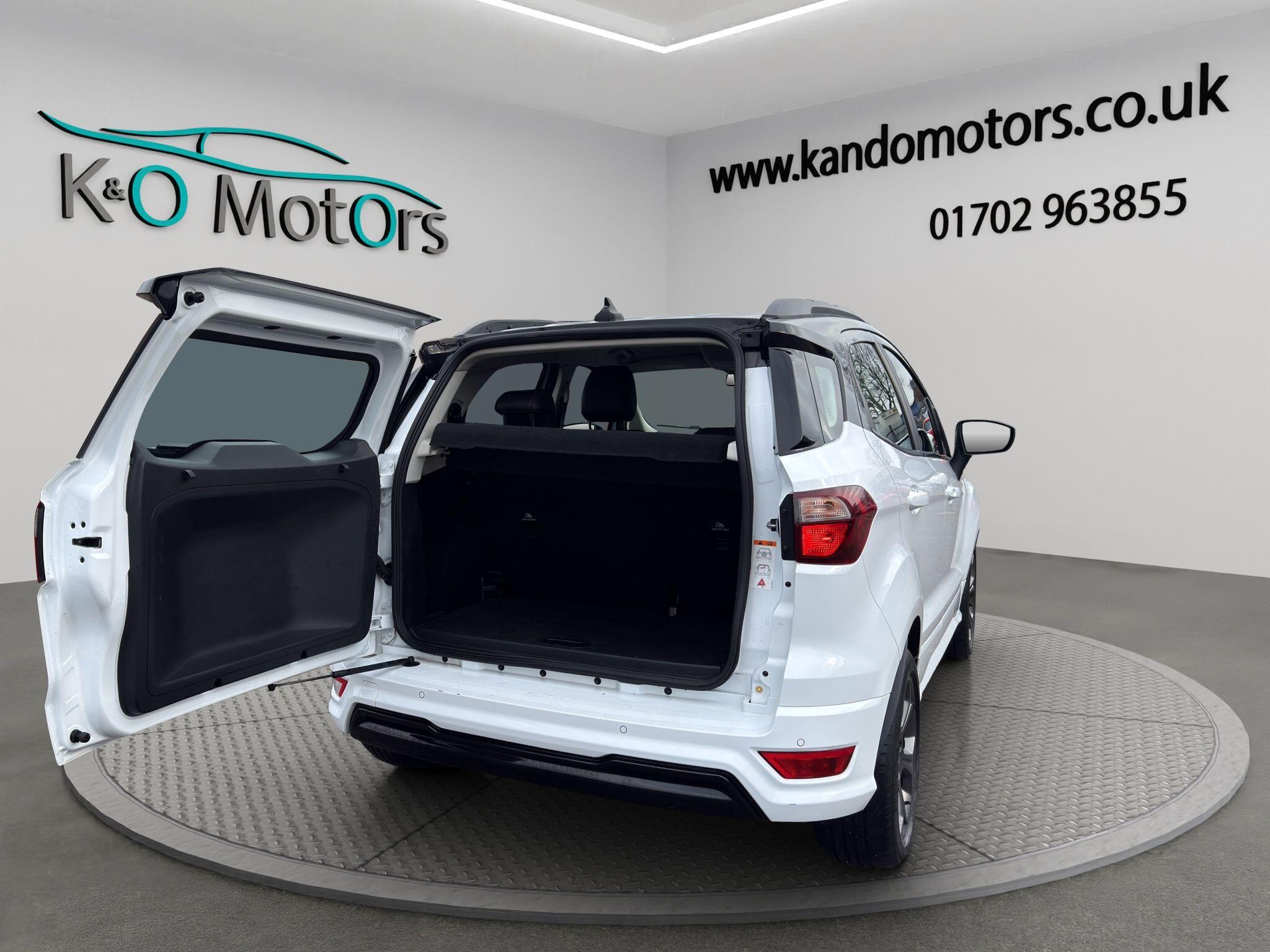 This 2019 Ford Ecosport ST-Line Automatic, finished in 2-tone Black and White, is ULEZ compliant and offered for sale in Southend, Essex. It benefits from fantastic service history, some great optional extras such as integrated SatNav, reversing camera and sensors, keyless start, heated front screen and more! The car has been fully prepared and is ready for its next owner today. K&O Motors, your trusted independent car dealer in Southend-on-Sea, Essex, specialising in quality used cars at competitive prices. All vehicles are hand-selected for condition, value, and performance and are available for immediate viewing. We are a family run business with 8 staff members (7 are family!) and offer a much more friendly environment to buy your next car than some of the bigger supermarket dealers! At K&O Motors in Southend, every vehicle is HPI clear and undergoes a comprehensive 150 point health check for complete peace of mind. We’re proud to be ranked in the top 5% of AutoTrader dealers for five consecutive years, earning the “Highly Rated for Customer Service” award every year thanks to our commitment to customer satisfaction. Ask a team member how to secure this vehicle today with a fully refundable deposit scheme from as little as £250. With over 300 verified 5-star reviews and a 99%+ customer satisfaction rate, you can buy with confidence. We offer competitive part exchange, flexible finance options for all credit backgrounds (including poor credit), and nationwide delivery. For added reassurance, nationwide warranty cover is available for up to 3 years. We’re conveniently located in Southend, Essex, with free collection from Southend Central or Prittlewell train stations. People have also flown into London Southend airport to visit us! Viewings is advised by appointment. Opening hours: Mon–Fri 9:15am–5.30pm | Sat 9:15am–1pm. Out-of-hours appointments available on request. K&O Motors – Quality Used Cars in Southend, Essex. Contact us today.